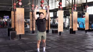 - Empuja la barra hacia arriba hasta que los brazos estén completamente extendidos.