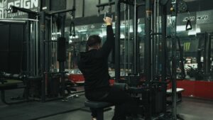 1. Preparación: Colócate frente a la polea con barra y ajústala a la altura de tus hombros. Asegúrate de que los ajustes sean los adecuados para evitar tensiones innecesarias en las muñecas.